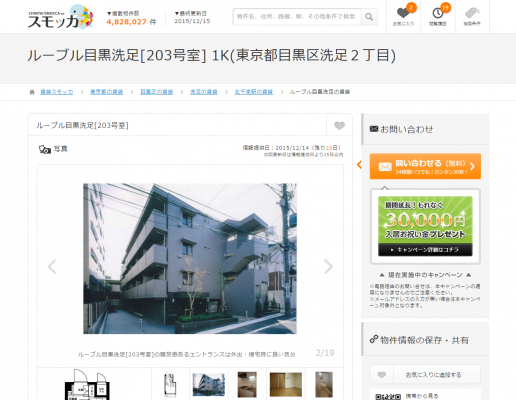 「賃貸スモッカ」は、北海道から沖縄までの物件情報が毎日更新される日本最大級の賃貸検索サイトです。サイトでお問い合わせしたお部屋にご入居いただいた方には「入居お祝い金」として3万円をもれなくプレゼントするキャンペーンを実施しております。