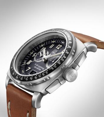P-38のコックピットの計器をモチーフにした文字盤フォント、当時流行していたクッションケースなど。ヴィンテージデザインが魅力の同シリーズに、タンカラーのレザーストラップを採用することで、より一層のヴィンテージ感を演出。GMTモデルとクロノグラフモデルをそれぞれラインナップしています。