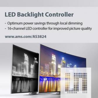 ams(日本法人:amsジャパン株式会社、東京都港区、カントリーマネージャー 岩本桂一)は本日、テレビ向け16チャネルLEDバックライトコントローラ、AS3824を発表しました。AS3824は表示画面のセクションごとのローカルディミングを実現し、画質の向上と20~30%までの省電力化を両立しています。
