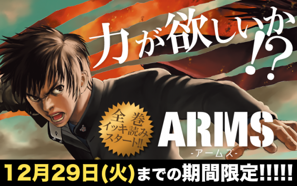 『ARMS』につきましても、マンガワンチャンネル上にて12/19~12/29までの全巻イッキ期間中毎日1話ずつ配信いたします。