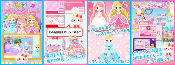 『プリンセスルームへようこそ』は、壁紙、家具、プリンセスの宝物など予め用意されたアイテムから好きなアイテムを選んで、オリジナルのプリンセスルームを作るアプリです。楽しく遊びながら子供たちの自由な発想力を養います。本アプリは“子供たちの好奇心を楽しく育てる”をコンセプトに開発中の、知育アプリシリーズ「ドキドきっずシリーズ」第2弾として提供するもので、無料のFree版とスペシャル版(240円)を配信します。スペシャル版では、全てのアイテムが開放され、プリンセスを選んだり、ドレスデコレーション等もお楽しみいただけます。