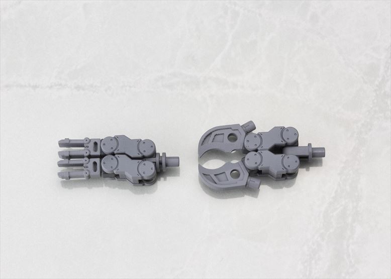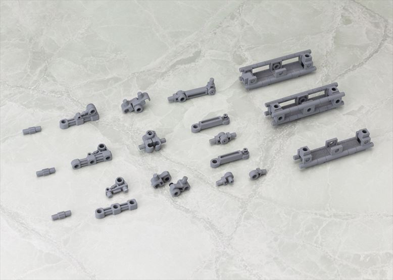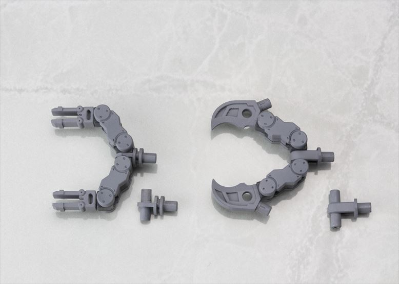 可動アームタイプの拡張セットである本シリーズは、第一弾は“ハードポイント多め”のアイテムとなり、アームユニットは本体内部に折りたたみ収納が可能で、拡張性の高さがポイントです。第二弾は“スタンダードさが売り”のアイテムとなり、アームユニットは関節部で綺麗に折りたたみが可能です。先端にはハンドパーツやクローパーツを取り付けて「M.S.Gウェポンユニットシリーズ」(別売)などを装備させる事もできます。各部のハードポイントは3mm径で統一され、同じくコトブキヤオリジナルシリーズの「フレームアームズ」や「フレームアームズ・ガール」など、様々なプラモデルとの組み合わせが可能です。