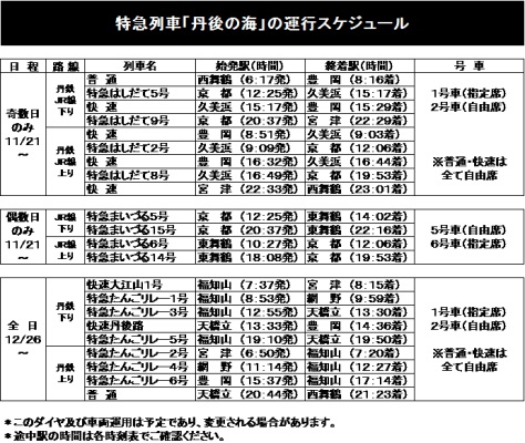 ※12月26日は、「たんごリレー号」等での運行を予定しています。