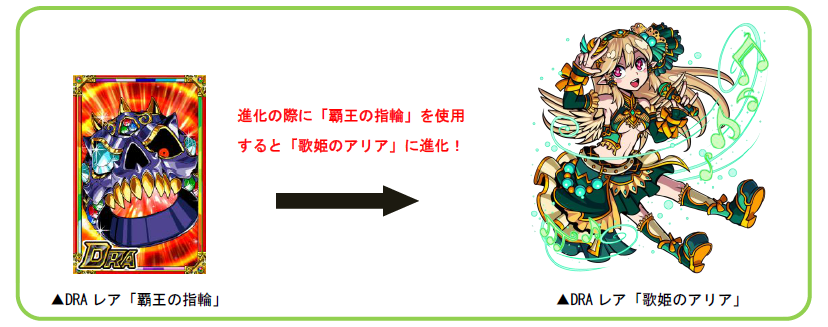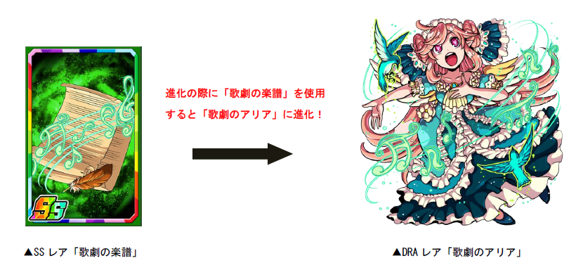 SSSレア「アリア」を進化させる際、「歌劇の楽譜」を使用するとDRAレア「歌劇のアリア」に