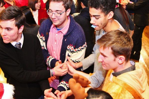 今回開催した『EF Christmas Party 2015』では、国内外で人気が高いスピーチ・イベントTEDが公式WEBサイト上で公開しているジェーン・マクゴニガル氏のTEDスピーチ動画(動画タイトル:“ 大規模多人数同時参加型 ”指相撲 ? )で紹介する、”大規模多人数同時参加型”指相撲を行い、会場に訪れた学生たちの国際交流を盛り上げました。