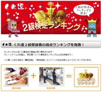 2級検定では、当協会のホームページ上で得点を公開しても良いというアンケート結果の受験生の得点をランキング形式で公開しております。(http://kuretatsu.com/ranking.html)