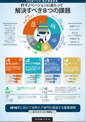 それぞれの項目ごとに分析を加えてホワイトペーパーを作成するとともに、わかりやすいインフォグラフィックス(http://info.whatsupgold.com/rs/307-TTO-181/images/IG-8-Issues-Japanese.pdf)にもまとめました。調査分析結果を、本日12月24日に発表いたします。