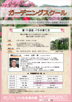 < 『いきがい・絆・健康・くつろぎ』 情報 >リソル生命の森「お茶の間ゼミ」1月の日程=「ガーデニング・バラの育て方」「楽しい歌舞伎雑学」「認知症予防のアロマケア」