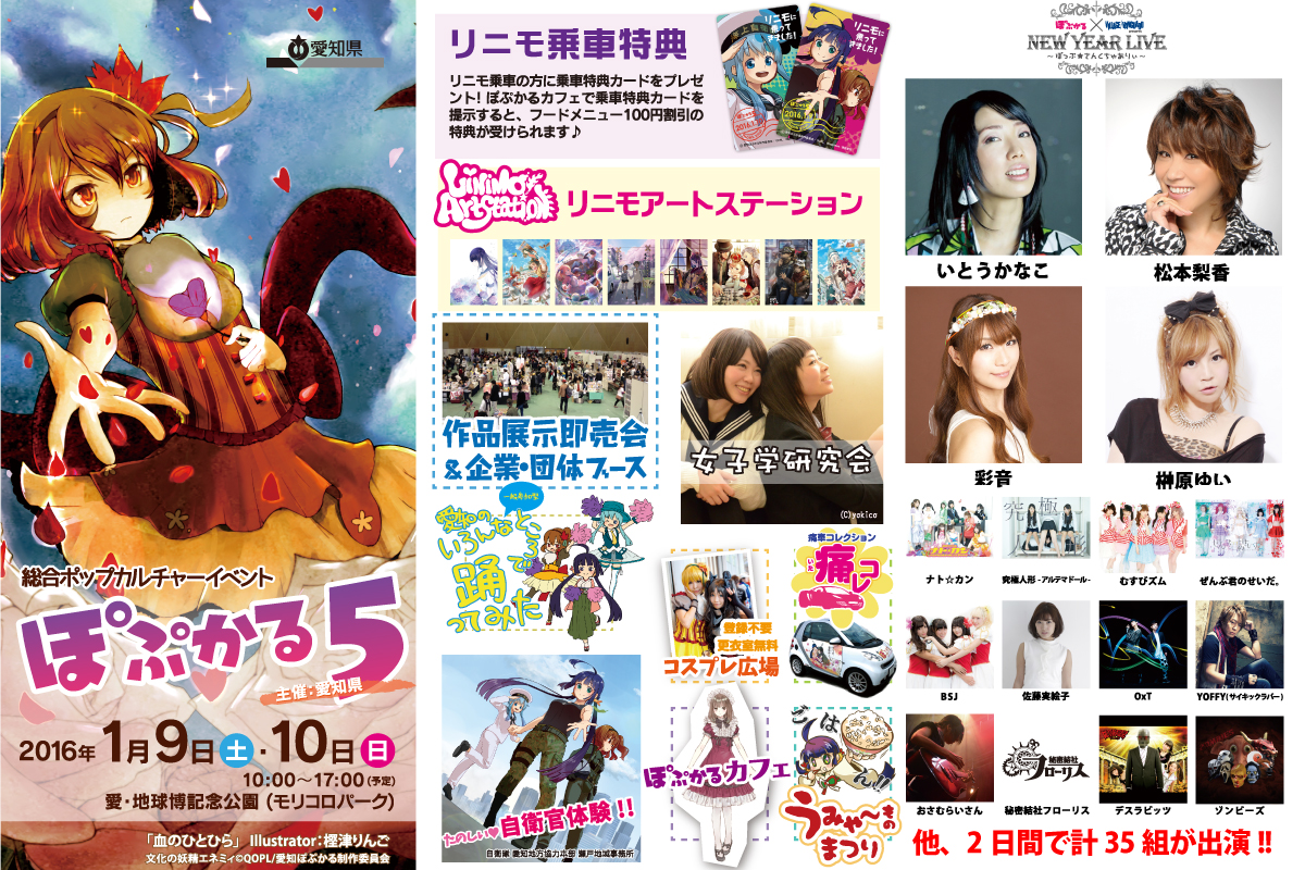 株式会社アルファポイント(本社:愛知県名古屋市、代表取締役社長:丸山和之)は、平成28年1月9日(土)・10日(日)に、愛・地球博記念公園(愛知県長久手市)で、5回目を迎える愛知県主催の総合ポップカルチャーイベント「ぽぷかる5」(共催:中日新聞社、後援:文化庁)を開催します。