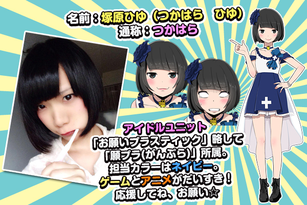通称つかはら。担当カラーはネイビー。ゲームとアニメがだいすき!