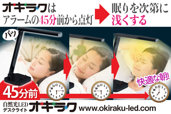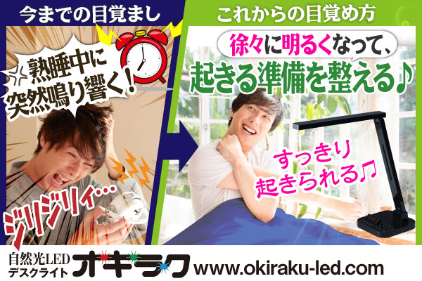 ウェイクアップ機能の付いた自然光LEDデスクライト【オキラク】(http://www.okiraku-led.com/)