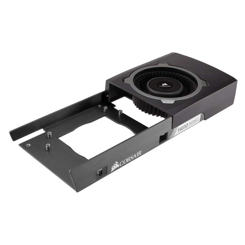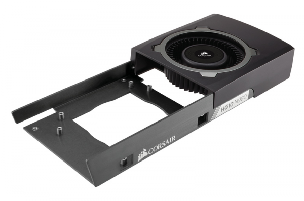 HG10 N980 Editionは、リファレンスカードデザインを採用したNVIDIA GeForce GTX TITAN X/GTX 980 Ti/GTX 980/GTX 970、NVIDIA QUADRO M6000対応GPUクーリングブラケットです。グラフィックスカードのクーラーをCORSAIR水冷一体型ユニットHydro Series H110i GT、H110、H100i、H90、H80i、H75、H60で簡易水冷化することができます。優れた熱伝導効率を誇る高剛性アルミニウムフレーム、VRAM、VRMをより効果的に冷却するサーマルパッドにより、圧倒的な冷却性能を発揮します。
