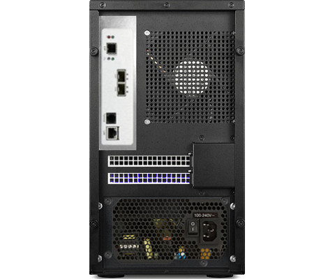 DS24-12SIa シリーズは、24 台の 2.5 インチ・ホットスワップ対応リムーバブルベイと、1.2GHz のデュアルコア RAID-on-Chip(ROC)プロセッサーにより、RAID レベル 0, 1, 10(1E), 3, 5, 6, 30, 50, 60, シングルディスク/JBOD をサポートし、PCI-Express3.0 内部バス、オンボード 2GB(最大 8GB)DDR3-1866 ECC SDRAM、iSCSI オフ ロード・エンジンを装備したハードウェア RAID コントローラを、堅牢なメタル製ミドル タワーケースに組み込んだデュアル 10GbE iSCSI 接続ストレージ・システムです。