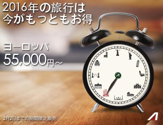 2016年を祝い、アリタリア運航のすべてのフライト、エコノミークラスだけでなく、プレミアム・エコノミー、ビジネスクラスも特別キャンペーン料金で販売いたしております。