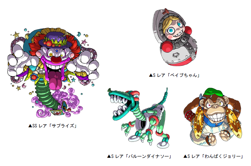 SSレア「サプライズ」、Sレア「ベイブちゃん」「バルーンダイナソー」「わんぱくジョリー」と交換ができます。