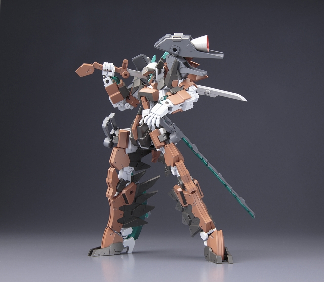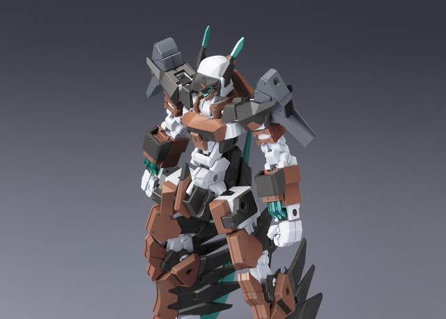 本体カラーを新規色に変更し、機体イメージを一新。各部の透明ユニットはクリアーパーツで再現、フレームの変形により鳥形巡航形態へ変形。専用設計された脚部股関節フレームにより、大胆なアクションポーズが可能となります。追加要素として、肩、腰部に3mm軸用の接続穴を設定できるアペンドパーツが付属。従来装備の「三節刀」に加え、斬撃武器「ベリルマチェット」×2が新たに付属。マチェット刃部分はクリアーパーツ製。オプションユニットとして「エクステンドブースター」×2が付属。各クリアーパーツは設定カラーで成型されたものに加え、無色透明で成型されたパーツが付属。塗装することでお好みのカラーリングにカスタマイズできます。素体となる「フレームアーキテクトTYPE001」は〈Ver. F.M.E〉に準じたPS素材製。ハンドパーツは各武器をしっかりと保持できる専用のものが付属。マルチカラーキット仕様で、組み立てるだけで臨場感あふれる仕上がりに仕上がります。