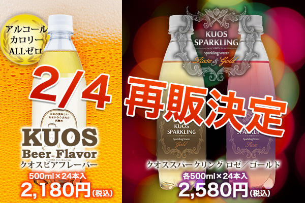 株式会社OTOGINO(オトギノ:社長 鬼武公洋 本社 大分県日田市北友田2丁目2123番地の1)が運営する、楽天総合ランキング1位を獲得した人気炭酸水「KUOS(クオス)プレーン」に続き、ビールテイストが話題の「KUOSビア」と華やかなシーンにピッタリなおしゃれで気品のある「KUOSロゼ&ゴールド」が新しく進化して、ついに2月4日再販が決定致しました。