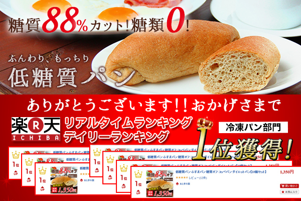 株式会社OTOGINO(オトギノ:社長 鬼武公洋 本社 大分県日田市北友田2丁目2123番地の1)が運営する、各コマースサイトのおとぎの国食品館で発売されている低糖質パンが、楽天市場の冷凍パン部門でリアルタイムランキング及デイリーランキングにて1位をいただきました。