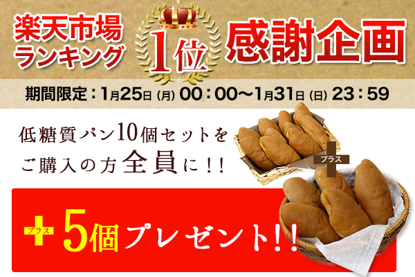 ※2016年1月25日~2016年1月31日までお買い上げの皆さま全員に低糖質パンをさらに5個プレゼント