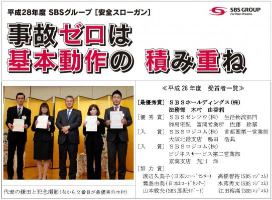 SBSグループは、従業員ひとり一人が安全意識を常に持ち事故ゼロを目指すため、平成28年度SBSグループ安全スローガンを決定しましたのでお知らせいたします。
