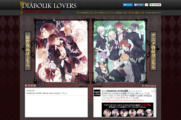 1月29日より、DIABOLIK LOVERS公式通販「DIABOLIK LOVERS Official Online Shop 」がリニューアルオープン致しました。