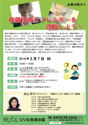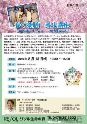<リソル生命の森「お茶の間ゼミ」2016年2月の各種講座予定>