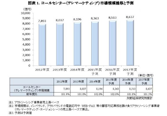本調査におけるコールセンター(テレマーケティング)市場規模は、インバウンド、アウトバウンドの電話応対やWEB・FAX等の顧客対応業務を請け負うアウトソーシング事業者(テレマーケティング・エージェンシー)の売上高ベースで算出した。