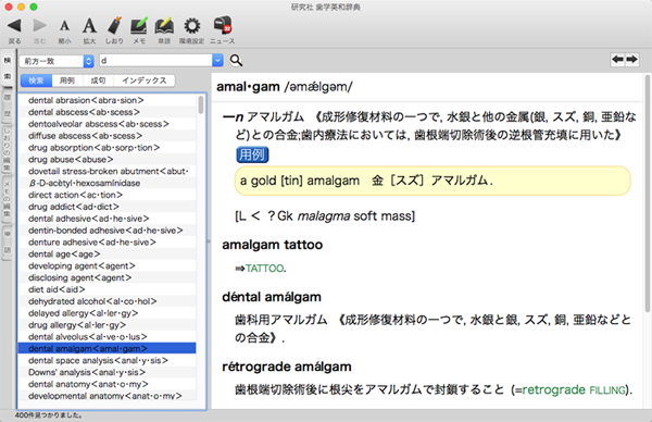 『研究社歯学英和辞典』は、収録語数約3万7千。歯学用語のほか、基本的な医学用語、耳鼻咽喉科など隣接医学領域の用語も多く収録した辞典です。各語に必要な解説を付し、学生や専門外の使用者にも対象が理解できるように配慮しました。歯学研究者、歯学生、歯科医師、歯科技工士、また看護師や栄養士、リハビリテーション医療関係者などに広くお薦めです。