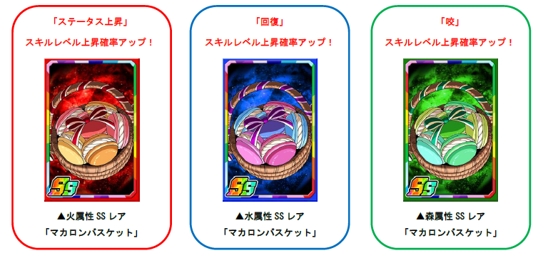 「マカロン」は経験値がアップするだけでなく、一部のスキルレベル上昇確率もアップします。
