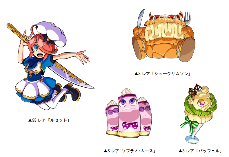 Sレア「シュークリムゾン」「ソプラノ・ムース」「パッフェル」と交換することができます。