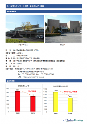具体的な工事内容は、施設内に湧き出す温泉を排熱回収ヒートポンプの導入により有効的に活用する、クラブハウス内の空調設備の見直し、LED照明への変更、さらにエネルギーマネジメントシステム(EMS)の導入によるエネルギーの見える化により効率的にエネルギー消費量を低減する(別添資料参照)などで、今回の設備改修により年間約32.4%のエネルギー消費量を低減。また、二酸化炭素の排出量も年間約30%削減できるというものです。