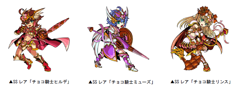 「自分級」以上のボスモンスターとして、SSレア「チョコ騎士ヒルデ」「チョコ騎士ミューズ」