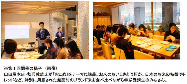 ※第1回開催では、 山田屋本店・秋沢敦雄氏が「おこめ」をテーマに講義。お米のおいしさとは何か、日本のお米の特徴やトレンドなど、特別に用意された発売前のブランド米を食べ比べながら学びました。