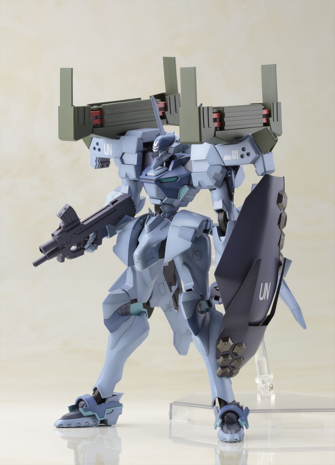 「突撃前衛仕様」「強襲前衛仕様」だけでなく「打撃支援仕様」「砲撃支援仕様」「制圧支援仕様」と、不知火の全ての仕様が再現可能なキットになります。「87式突撃砲」、「74式近接戦闘長刀」は形状を再度検証した、『武御雷 Type-00R Ver.1.5』と同様のものが付属します。突撃砲については弾倉2種の取り外しが可能なだけではなく、支援突撃砲への組み換えも可能です。「92式多目的自律誘導弾システム」と「レーダーコンテナ」が付属、シールドである「92式多目的追加装甲」は、下部可動部は差し替え無しで可動します。伊隅ヴァルキリーズが再現可能なデカールが付属します。