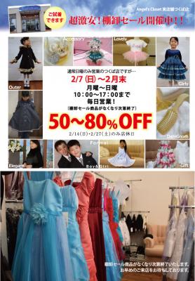 在庫処分『 80~50%OFF 激安!棚卸セール 』を開催する。