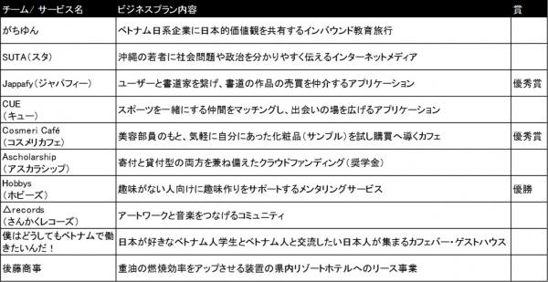 ■「第8回 沖縄学生ビジネスプランコンテスト」決勝進出チーム(全10チーム)