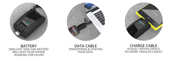 1台で、「モバイルバッテリー」、「データ転送ケーブル」、「充電ケーブル」の3つの機能がセットで付いているのだ。