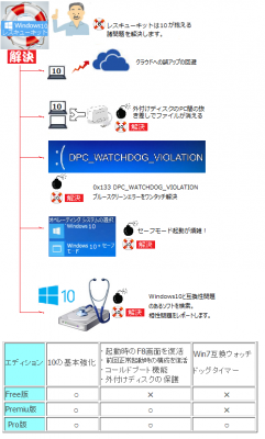 10秒の応答時間は非常に厳しく、使っているうちにガタが来た機材はどうしても応答が遅くなります。あるいはOSは使用しているうちにどうしても挙動が遅 くなります。Windowsw10に対応した機材においてもブルースクリーンエラーDPC_WATCHDOG_VIOLATION(0x133)は発生す る危険性があります。
