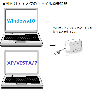 Windows10の最大の問題としてPCをシャットダウンし電源を OFFにしている時に外付けディスクを外し、他のPCに接続して書き込みした情報は高い確率で消えま す。これはWindows10のシャットダウンが実際にはスリープの動きをするためです。スリープしている間に外付けディスクを更新したためウェークアッ プしたWindows10は更新に気がつかないためにおきます。