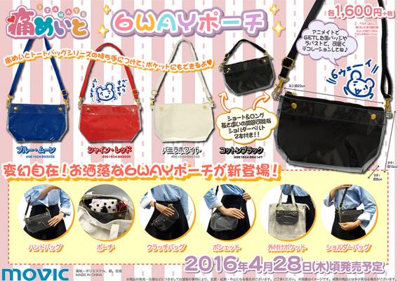 商品名: 痛めいと 6WAYポーチ ブルー・ムーン/シャイン・レッド/バニラホワイト/コットンブラック