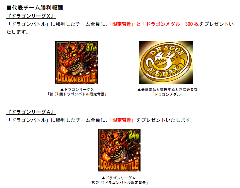 「ドラゴンバトル」に勝利したチーム全員に、「限定背景」をプレゼントいたします。