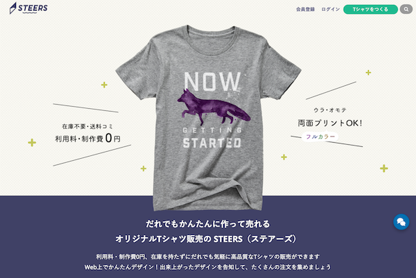 ステアーズはネットでデザインしてすぐに販売できるリスク0のTシャツ販売プラットフォームです。