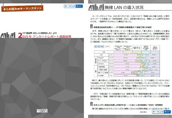 今回は2015年に実施した「企業におけるセキュリティ対策」や「無線LANの導入状況」、「ストレスチェック義務化の対応状況」などの読者アンケート結果を元に掲載した21記事の一部を電子書籍化し、本日より無料配信いたします。