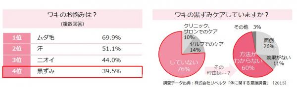 ワキのケアといえば、従来だと「ムダ毛」「汗」「ニオイ」が主流でしたが、今年は「黒ずみ」ケアが注目を集めています。