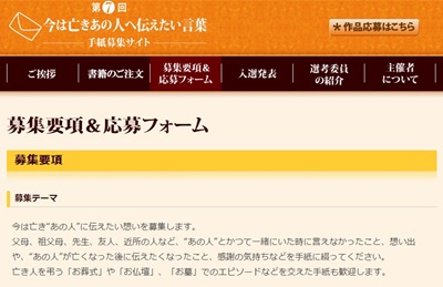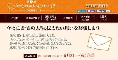 「今は亡きあの人へ伝えたい言葉」募集要項:http://www.tsutaetai.net/bosyu.html