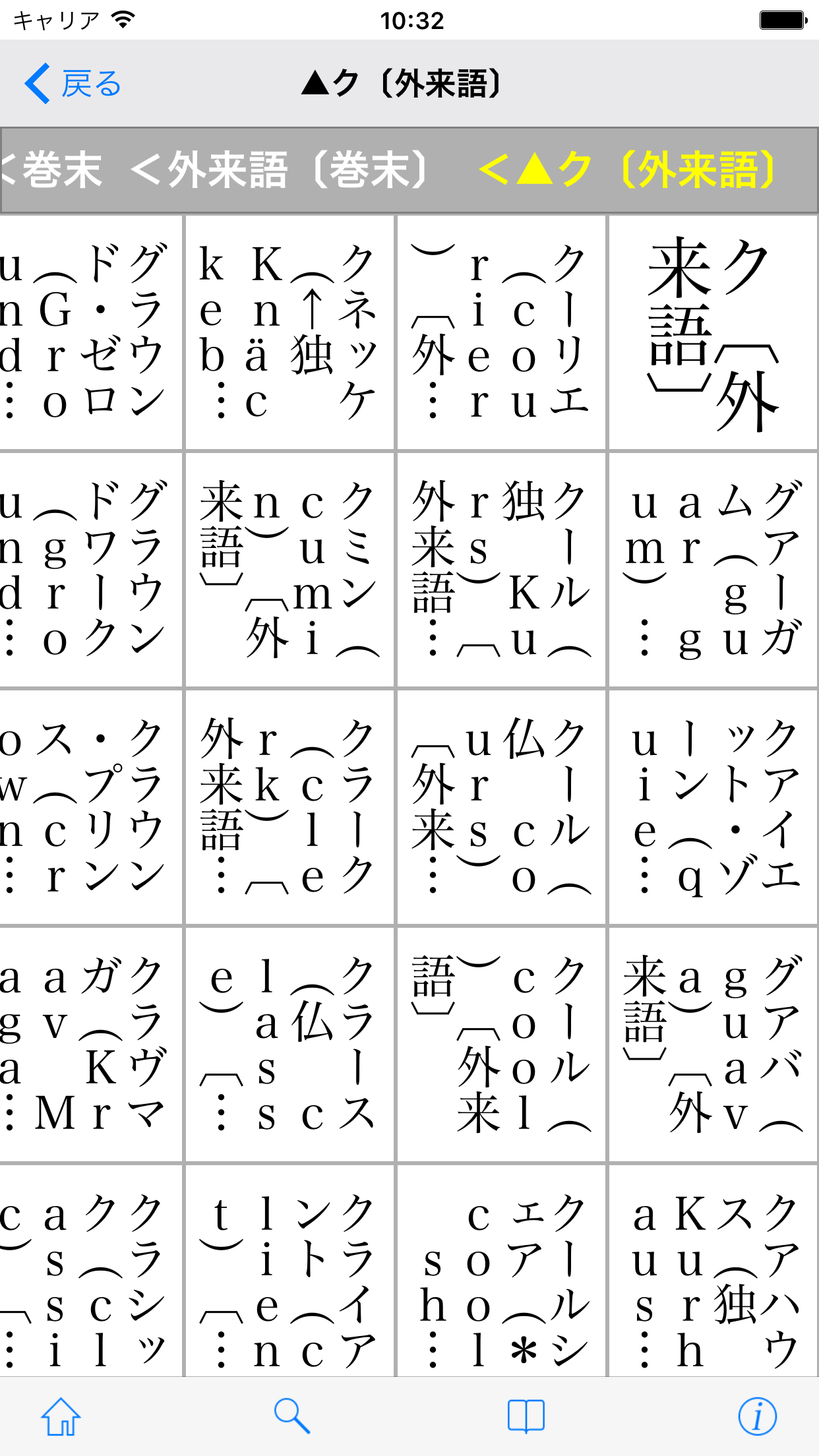 ●豊富な検索オプションを用意(前方一致 / 後方一致 / 完全一致 / 部分一致 / 全文検索)。それぞれの検索方法で、文字を入力すると候補見出し語が表示されるインクリメンタルサーチに対応。(部分一致・全文検索を除く)用語をうろ覚えでも検索が容易です。