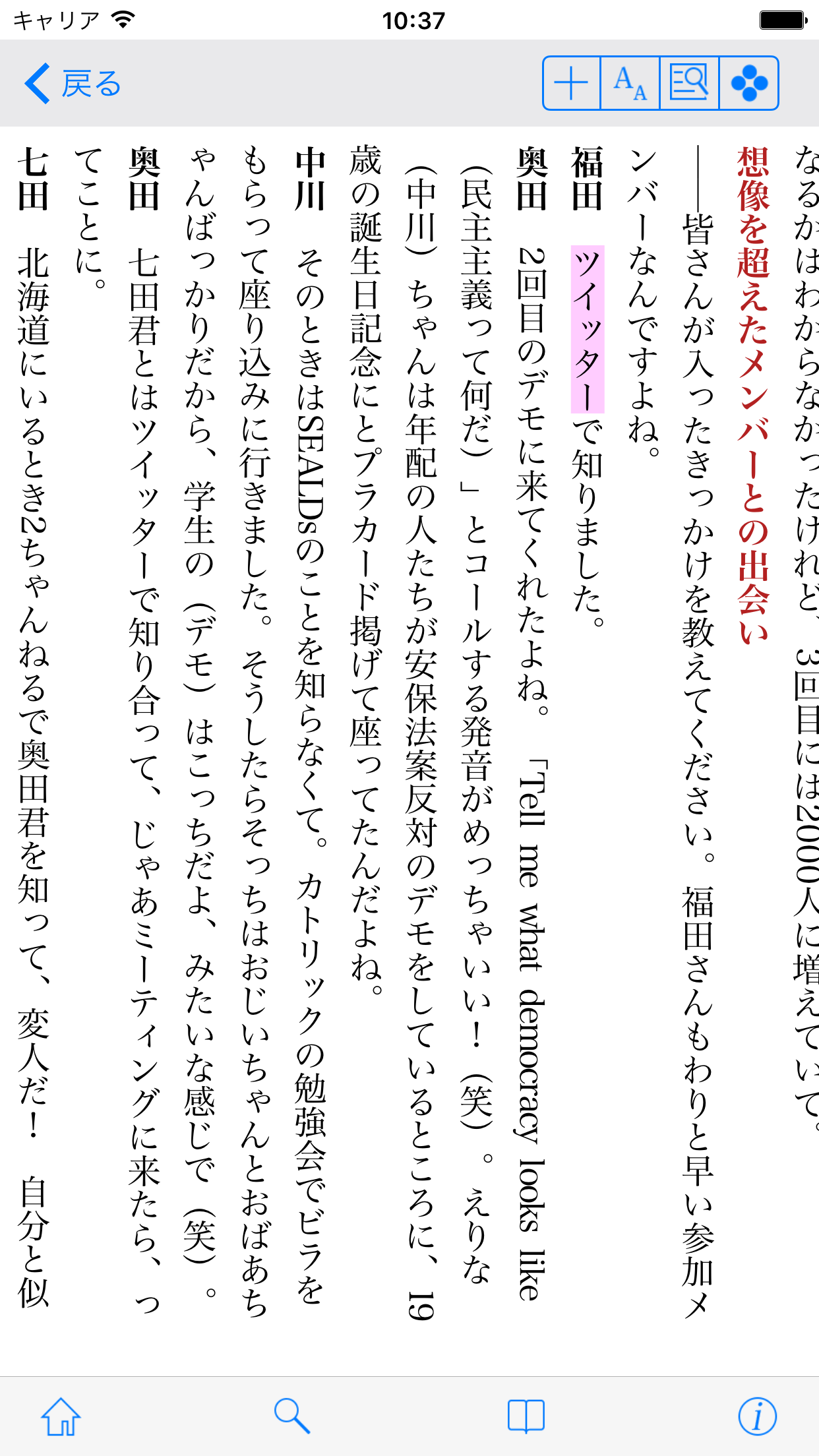 ●「縦書き」、「横書き」表示切り替え機能