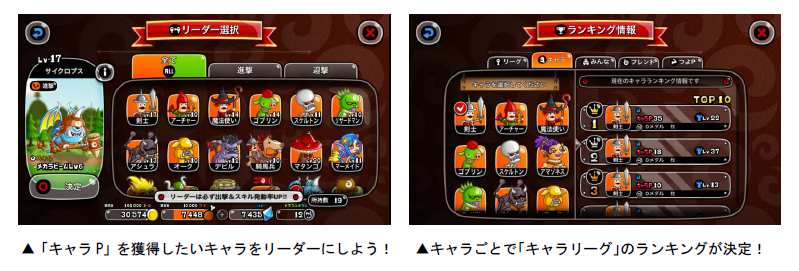 「キャラリーグ」はリーグで勝利すると、そのバトルでリーダーにしたキャラの「キャラP」を