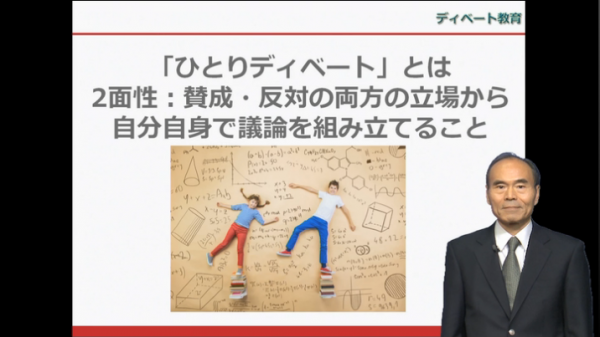 株式会社キバンインターナショナル(東京都千代田区・代表取締役 中村央理雄)は、2/26(金)、eラーニング『ひとりディベート講座』、『ディベート思考理論編』を開講しました。「ひとりディベート」とは、自分自身で肯定・否定の両方の立場から議論を組み立てることです。「ディベート思考」とは、ビジネスに直接に役立つ能力のことで、具体的には、論理的思考力、分析力、洞察力、問題解決力等を意味します。ディベートの啓蒙活動に10年以上従事してきた小林先生が、「ひとりディベート」および「ディベート思考理論」をわかりやすく解説した講座です。