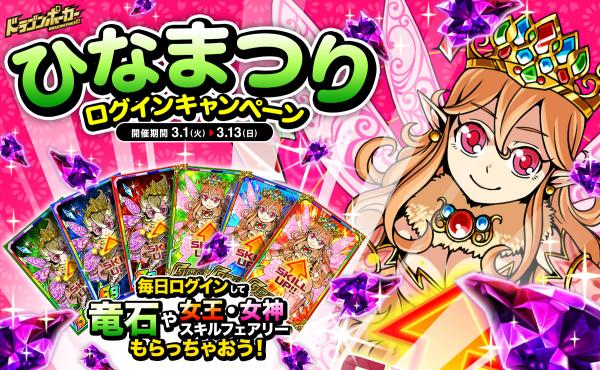 「ひなまつりログインキャンペーン」を開催いたします。さらに、ログイン5日目には